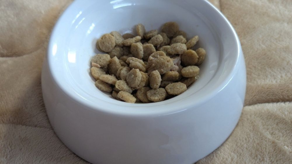 ウェットフードや食材をトッピングしなくても、ドライフードをふやかすだけでかさ増しになります。